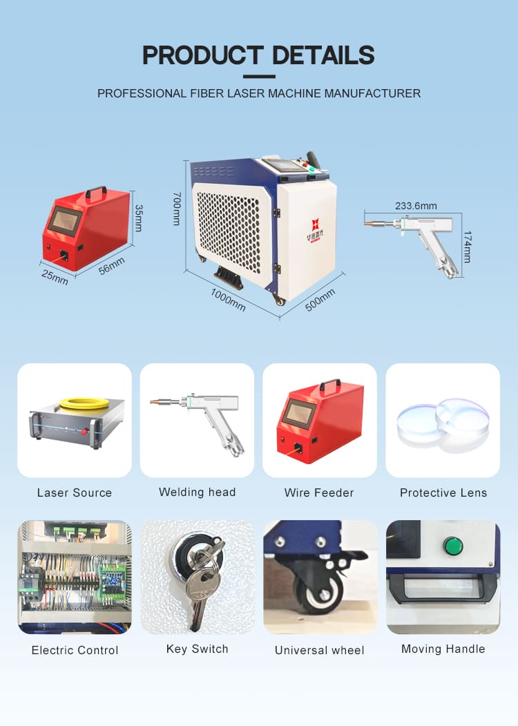 TheHUAWEI LASER 1500 W 2000 W 3000 W prilagodljiv ročni laserski varilni strojje vsestranskiRočni laserski varilni strojzasnovan za gladko in učinkovito varjenje kovin v širokem spektru aplikacij. HUAWEI LASER 1500 W 2000 W 3000 W prilagodljiv ročni laserski varilni strojzagotavlja čiste varjene šive, nizko toplotno popačenje in zanesljiv izhod za naloge izdelave, popravila in namestitve na kraju samem.