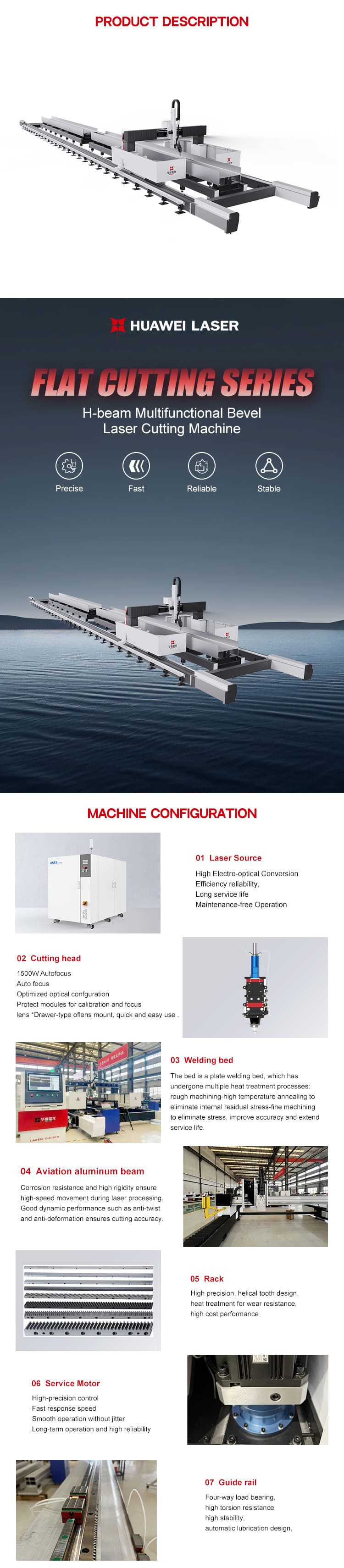 HUAWEI LASER predstavlja 3D CNC laserski rezalni stroj s H-žarkom 12000 W za obdelavo kovinskega jekla, ki zagotavlja izjemno visoko moč za konstrukcijsko jeklo, nosilce in težke izdelke. Podprti z naprednimi raziskavami in razvojem, obsežno proizvodnjo in zanesljivimi zalogami zagotavljamo cene neposredno v tovarni in hitro dostavo v razsutem stanju.