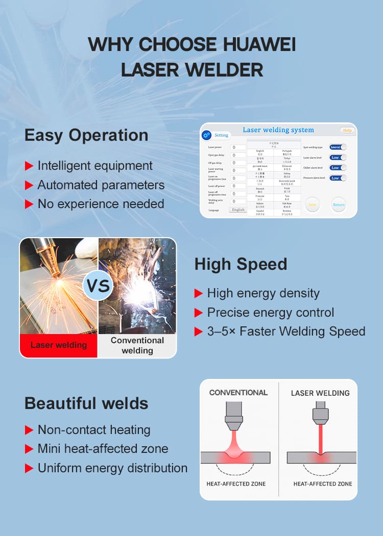 4. Enostavno upravljanje in učenje: ročno lasersko varjenje je preprosto in enostavno za učenje, prihrani stroške dela in je primerno za hitro usposabljanje in uvajanje.