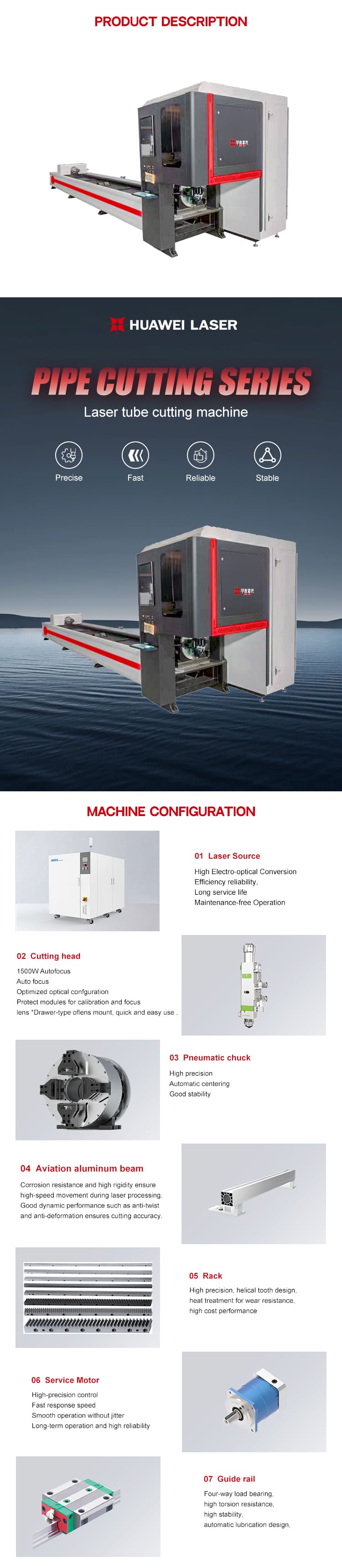 HUAWEI LASER 6000W visoko natančen laserski stroj za lasersko rezanje cevi z dvojnimi vpenjali je zasnovan za učinkovito in natančno obdelavo okroglih, kvadratnih in nepravilnih kovinskih cevi. Njegov sistem dvojne vpenjalne glave zagotavlja stabilno vpenjanje, minimalne vibracije in natančno vrtenje med rezanjem z visoko hitrostjo. Opremljen z visoko zmogljivim optičnim laserskim virom in inteligentno programsko opremo za nadzor zagotavlja čiste reze, gladke robove in odlično ponovljivost. HUAWEI LASER Double-Chucks Tube Fiber Laser Cutting Machine je napreden alternativni ročni laserski varilni stroj, zasnovan posebej za visoko učinkovito obdelavo cevi. Opremljen z dvojnimi pnevmatskimi vpenjalnimi glavami zagotavlja stabilno vpenjanje, samodejno centriranje in natančno vrtenje za gladke in natančne reze okroglih, kvadratnih in nepravilnih kovinskih cevi. Njegov visokozmogljivi laserski vir z vlakni zagotavlja hitro rezalno hitrost, čiste robove in minimalno toplotno deformacijo. Sistem za rezanje cevi HUAWEI LASER, zasnovan za kovinsko izdelavo, proizvodnjo pohištva, proizvodnjo fitnes opreme in avtomobilskih komponent, zagotavlja izjemno natančnost, zanesljivost in produktivnost za sodobne industrijske aplikacije. Ta stroj podpira samodejno nalaganje, optimizirane rezalne poti in hitro preklapljanje materiala, zaradi česar je idealen za proizvodnjo pohištva, fitnes opreme, gradbenih cevi in kovinskih izdelkov po meri. Zagotavlja močno zanesljivost in dosledno produktivnost za aplikacije za obdelavo cevi.